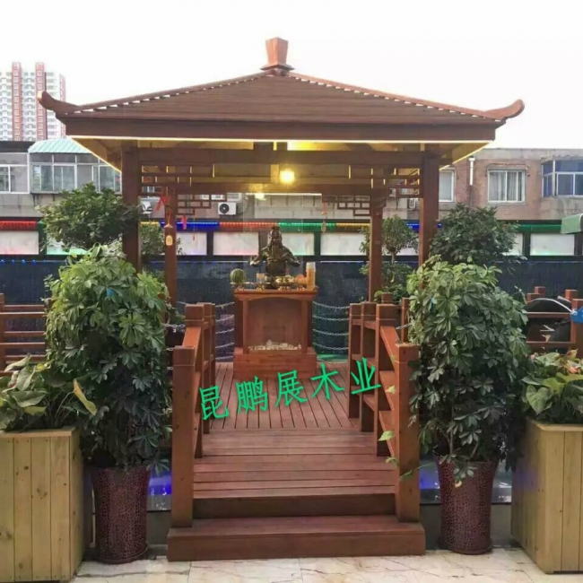 防腐木涼亭不但在古色古香的古典園林中還是現(xiàn)代園林中都可見到不同規(guī)格的涼亭。有在巍峨的山崗上,有像荷葉一般漂浮在水上,使之山水涼亭互相烘托仿佛是一副生動(dòng)的墨水圖,涼亭不禁作歇腳休息、擋雨之所,還能眺望遠(yuǎn)處景色??梢哉f防腐木涼亭實(shí)用又美觀。